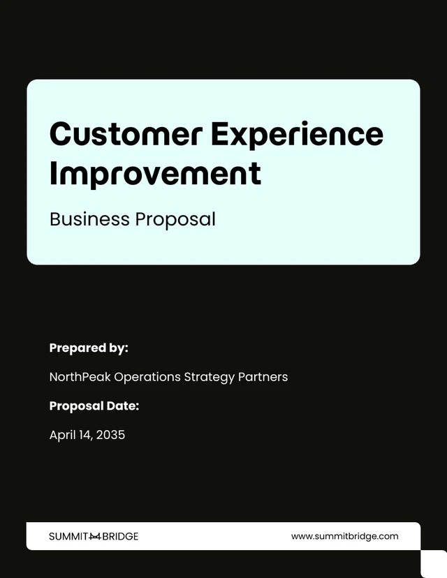Vuoi presentare le tue idee innovative per migliorare l'esperienza del cliente? Il nostro modello di proposta commerciale per il miglioramento dell'esperienza del cliente è il design ideale per creare presentazioni accattivanti. Questo modello personalizzabile offre un layout professionale per evidenziare le tue strategie per migliorare la soddisfazione del cliente. Personalizzalo per adattarlo al tuo brand con i nostri strumenti di modifica facili da usare. Aggiungi colori che riflettano l'identità della tua azienda, modifica le dimensioni per creare enfasi dove necessario e scegli tra un'ampia gamma di immagini e icone premium nelle nostre librerie gratuite per far risaltare la tua proposta. Questo modello è il design ideale per promuovere e far circolare la voce! Con Venngage, creare una proposta persuasiva e visivamente accattivante non è mai stato così facile. Che tu stia presentando a stakeholder o a un nuovo cliente, assicurati che le tue idee lascino un'impressione duratura.