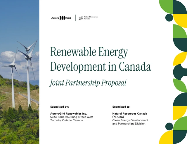 Dai il via ai tuoi sforzi collaborativi verso un futuro più verde con il nostro modello di proposta di partenariato congiunto per lo sviluppo di energie rinnovabili. Questo modello è stato meticolosamente realizzato per aiutarti a presentare le tue visioni strategiche, i tuoi obiettivi e i tuoi vantaggi ai potenziali partner nel modo più convincente. Progettato con un'estetica pulita e moderna, ti consente di personalizzare ogni dettaglio in base alle tue esigenze, garantendo che la tua proposta si distingua e comunichi le tue idee in modo efficace. Che tu debba modificare i colori, adattare le dimensioni o incorporare foto o icone specifiche, le nostre librerie gratuite di immagini sono ciò che fa per te. Immergiti nell'esperienza di editing fluida di Venngage e trasforma il nostro modello nella tua presentazione personalizzata che sicuramente farà parlare di sé e catturerà l'interesse dei partner giusti. Perfetto per i professionisti che vogliono avere un impatto positivo nel settore delle energie rinnovabili!